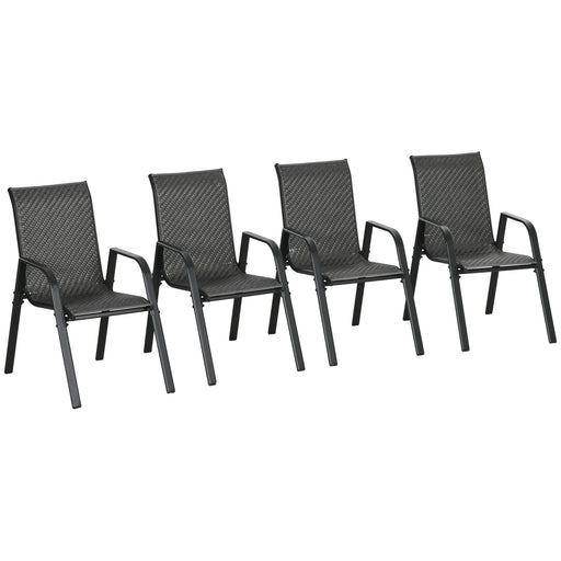 View full detailsStackable Rattan Chair Set of 4 - Durable Mixed Grey Outdoor Seating with Armrests and Backrest - Ideal for Patio and Garden Entertaining