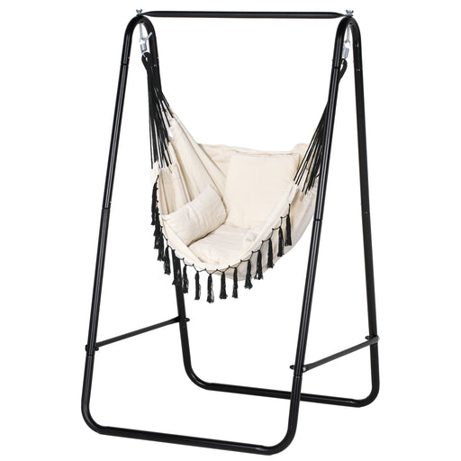 View full detailsHammock Swing Chair with Cushion and Stand - Cream White, Comfortable Hanging Chair - Perfect for Indoor and Outdoor Relaxation