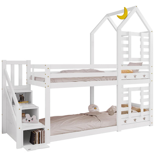 ```html White Enchanted House Bunk Bed Overview Sleep and Play in an Enchanted Bedroom Imagine a realm of sweet dreams and c...