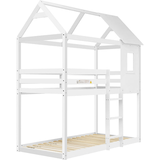View full detailsConvertible Twin Bunk Bed with Ladder and Window - Solid Pine Wood, Safety Certified Folding Sleeper, 198x94x221 cm in White - Perfect for Kids’ Bedroom Space Saving Furniture