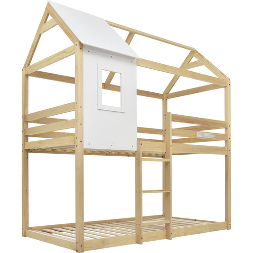 View full detailsSolid Pine Wood Bunk Bed with Convertible Ladder - Twin Sleeper with Safety Features, Foldable Design, 198x94x221 cm - Ideal for Space Saving & Kids' Room