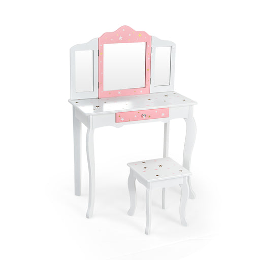View full detailsLittle Fashionist's Pink Vanity Table and Stool - Makeup Station with Tri-fold Mirror - Perfect for Kids Beauty Play Time