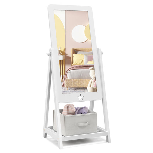 View full detailsBottom Shelf Wooden Mirror - Kids Standing Mirror with Storage Bin - Ideal for Children's Bedroom Organization