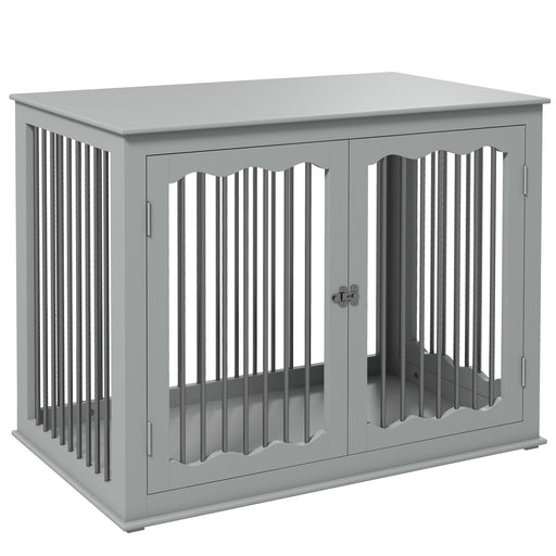 View full detailsThree-Door Medium Dog Crate End Table - Furniture-Style Pet Crate with Secure Locks & Latches, Grey Finish - Ideal for Pet Confinement & Home Décor
