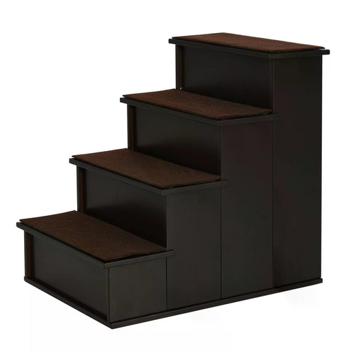 View full details4 Step Pet Stairs in Dark Coffee - Cushioned Ramp Steps for Dogs and Cats with Non-Slip Carpet - Ideal for Bed or Couch Access for Smaller or Older Pets