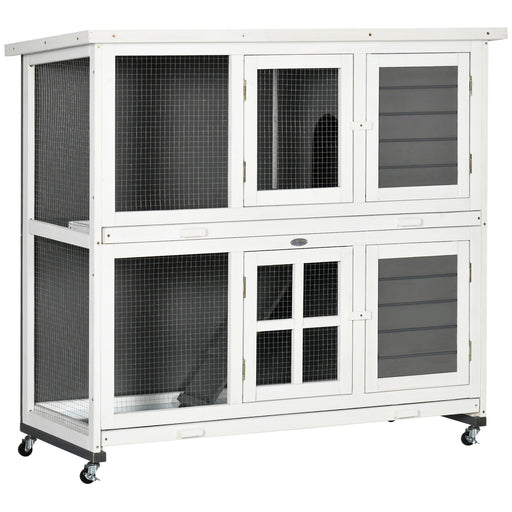 View full detailsWooden Rabbit Hutch on Wheels - Spacious Guinea Pig Cage with Slide-out Trays for Easy Cleaning - Ideal Small Animal House for Indoor & Outdoor Use, 119x50.5x109cm, Grey