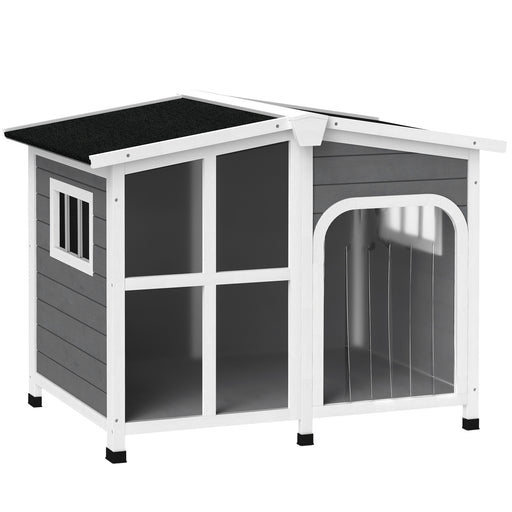 View full detailsPawHut Wooden Dog Kennel with Removable Floor, Asphalt and Openable Roof, Giant Window for Large Dogs, Charcoal Grey