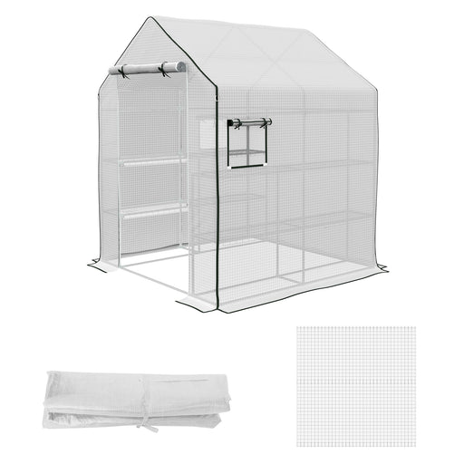 Walk-In PE Greenhouse Cover with Roll-Up Door and Windows - Durable Replacement 140x73x190cm Hot House Cover, White - Perfect for Gardeners and Home Farming Enthusiasts