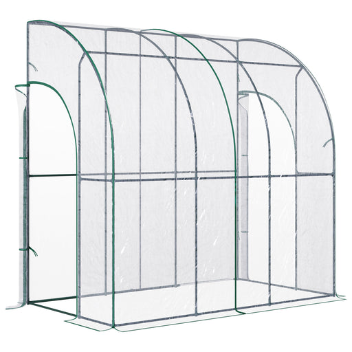 View full detailsSpace-Saving Lean-To Walk-In Greenhouse - Zippered Roll-Up Door, PVC Cover, Sloping Top Design, 143x118x212cm - Ideal for Urban Gardeners & Small Outdoor Spaces