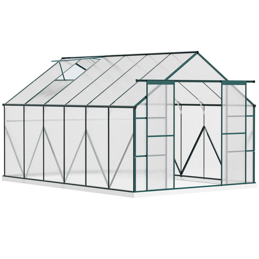 Aluminum Walk-In Greenhouse Kit - Polycarbonate Panels, Adjustable Roof Vent, Rain Gutter, 8x12ft - Ideal for Garden Enthusiasts & Green Thumbs