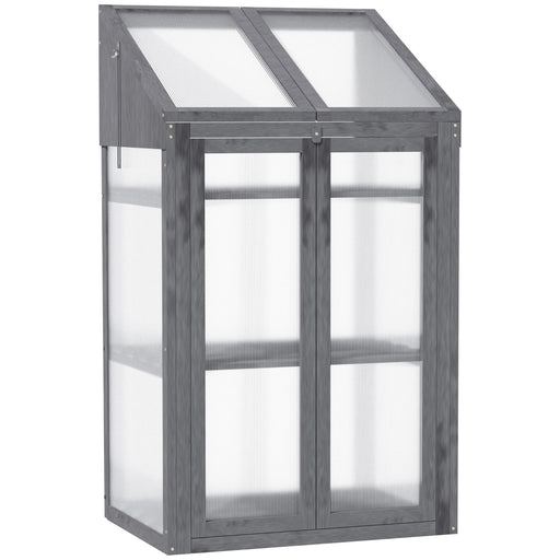View full details3-Tier Wooden Cold Frame Grow House - Polycarbonate Greenhouse with Adjustable Shelves and Double Doors, 80 x 47 x 138cm in Grey - Ideal for Season Extension and Plant Protection