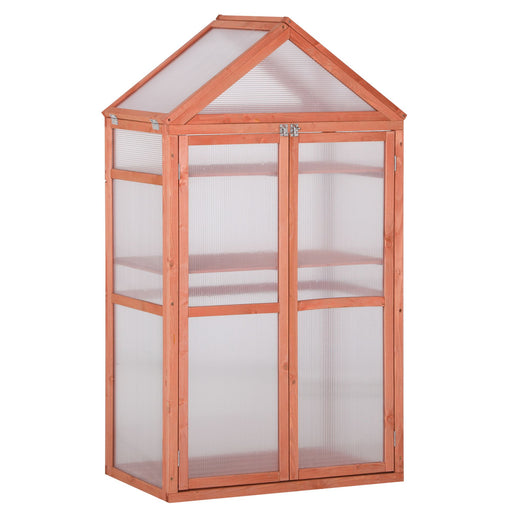 3-Tier Wooden Cold Frame - Polycarbonate Greenhouse with Adjustable Shelves and Double Doors, 80x47x138cm - Ideal for Garden Plant Growth and Protection