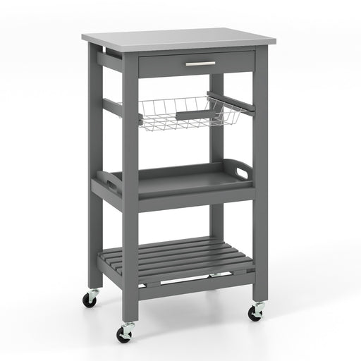 View full details4-Tier Rolling Trolley Cart - Equipped with Lockable Wheels, Durable Basket, and Multifunctional Drawer in Grey - Ideal Storage Solution for Tight Spaces and Small Apartments
