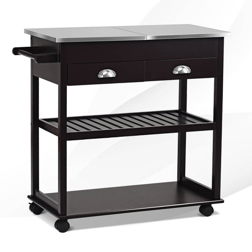 View full details3-Tier Brown Rolling Kitchen Island Cart with Drawers - Ideal Storage Solution for Home Chefs & Food Enthusiasts