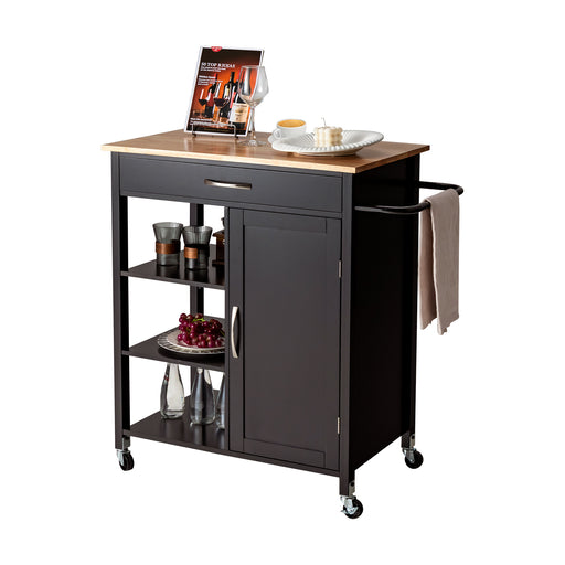 View full detailsKitchen Island Rolling Cart - Black with 2-Door Storage Cabinet Feature - Ideal for Extra Kitchen Storage and Workspace