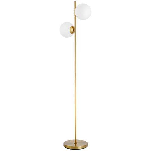 View full detailsGold Floor Lamp with Dual Glass Shades - Contemporary Metal Standing Light with Convenient Floor Switch - Stylish Illumination for Home or Office Decor