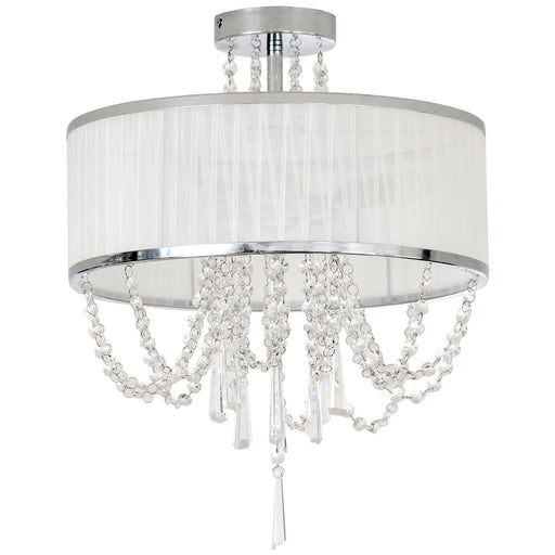 View full detailsContemporary Crystal Chandelier - LED Flush Mount Ceiling Fixture with Drum Shade, Silver - Perfect for Living Rooms, Bedrooms, Dining Areas