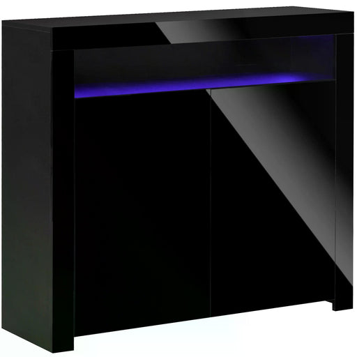 View full detailsModern High Gloss Sideboard with LED Lights - Multipurpose Buffet Cupboard with RGB Lighting - Sleek Storage for Entryway, Dining or Living Room, Black