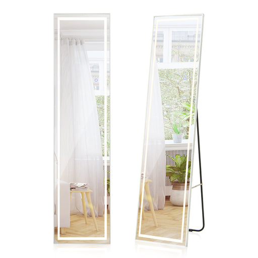 View full detailsLED-Lit Standing Dressing Mirror - Bedroom Wall Mirror with Dimmable 3-Color Lighting, White - Ideal for Makeup and Room Ambiance
