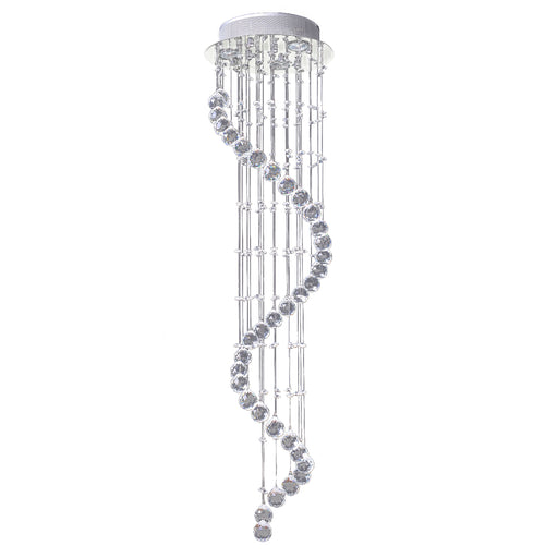 View full detailsElegant Metal Crystal Chandelier - Ceiling Pendant Light for Living Room and Stairway - Spiral Raindrop Design in Silver Finish