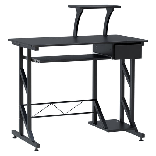 View full detailsComputer Workstation with Display Stand - Sliding Keyboard Tray and Host Box Shelf - Ideal for Home Office and Gaming, Sleek Black Design