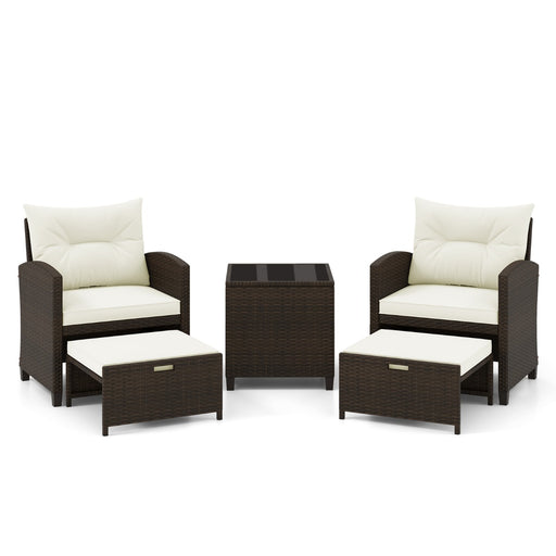 View full details5 Piece Patio Rattan Furniture with 2 Ottomans and Tempered Glass Coffee Table-