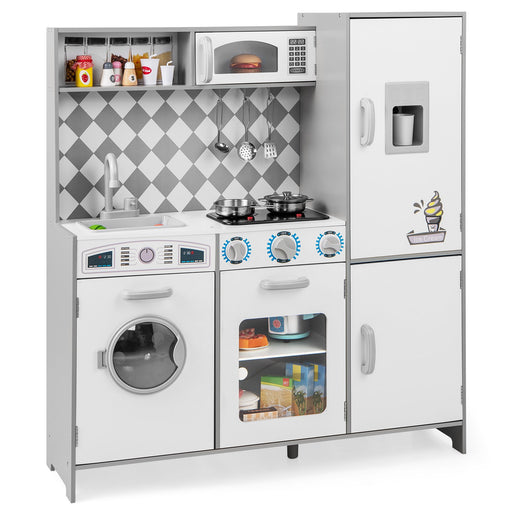 View full detailsAdjustable Wooden Kids Play Kitchen with Washing Machine-