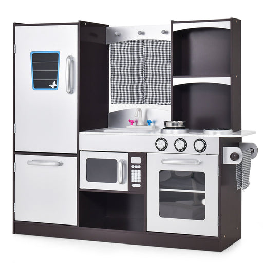 View full detailsWooden Kids Play Kitchen Set with Microwave Stoves Oven-