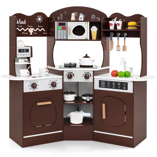 View full detailsWooden Pretend Play Kitchen with Real Sounds and Lights-Brown