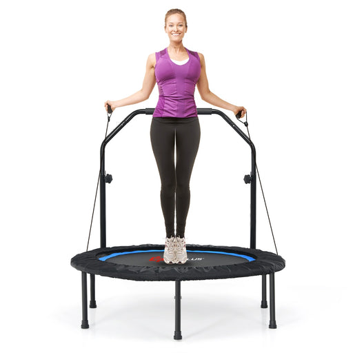 View full detailsBlue 40-Inch Trampoline Rebounder with Adjustable Handle - Sturdy Home Fitness Jumper - Ideal for Indoor Exercise and Cardio Workouts