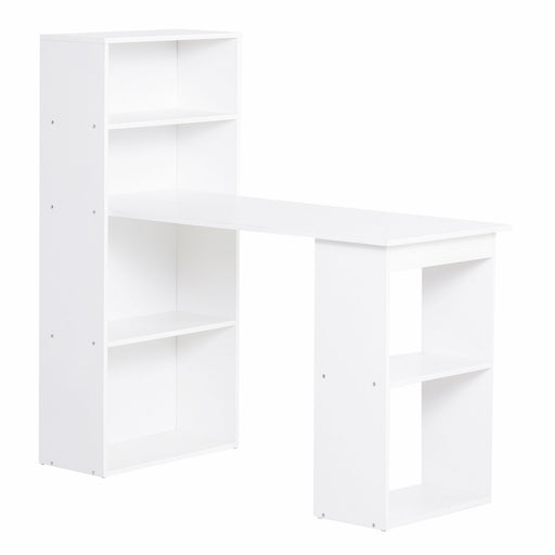 View full details120cm Modern Computer Desk with Bookshelf - Writing Table & Workstation for PC, Laptop with 6 Shelves - Ideal for Study and Home Office Use in White