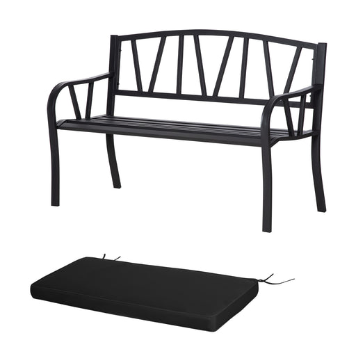 View full details2-Seater Metal Garden Loveseat - Cushioned Bench with Slatted Design & Decorative Backrest - Ideal for Patio & Outdoor Seating