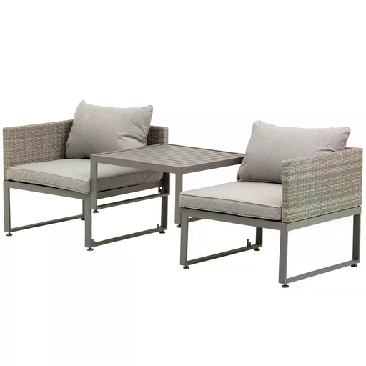 View full details2 Seater Rattan Wicker Sofa Set with Adjustable Coffee Table - Outdoor Garden Patio Lounge Furniture, Grey - Ideal for Conversational Seating & Relaxation