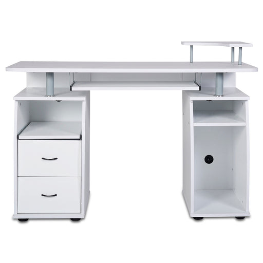 View full detailsContemporary Wood Workstation - White Office Computer Desk with Integrated Keyboard Tray - Ideal for Home Office Set-up