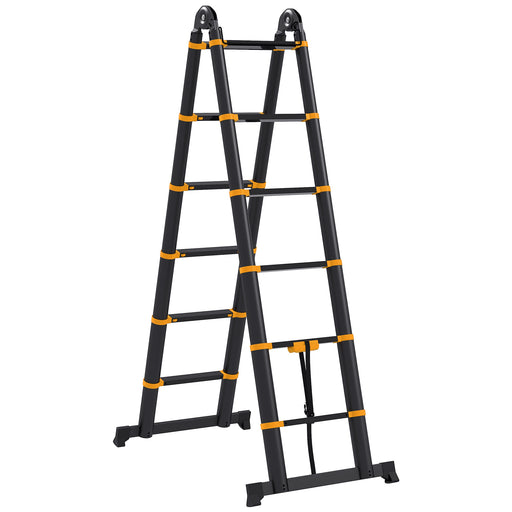 View full details3.8M Duo Aluminium Ladder with Integrated Tool Holder - Herringbone Extendable Ladder, 12 Non-Slip Steps for Safety - Ideal for DIY Enthusiasts and Professional Use