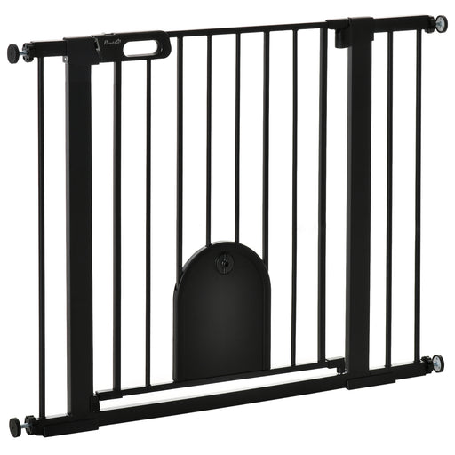 View full detailsExtra Tall Indoor Safety Pet Gate with Cat Door - Auto-Closing Dog Barrier 74-101cm Wide - Ideal for Keeping Pets Separate in Home, Black