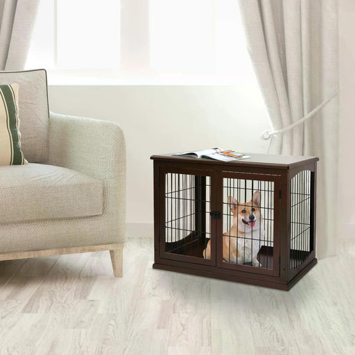 View full detailsOak-Tone Double Door Dog Crate End Table with Soft Cushion - Stylish Pet Cage Furniture - Ideal for Home Comfort and Pet Confinement Security