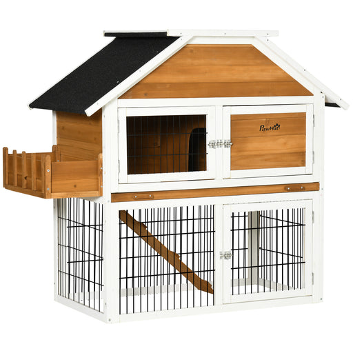 View full details2-Tier Wooden Rabbit Hutch with Run Ramp - Spacious Guinea Pig & Ferret Cage Coop with Sliding Tray, 94x97x61cm - Ideal Pet Shelter for Bunnies and Small Animals