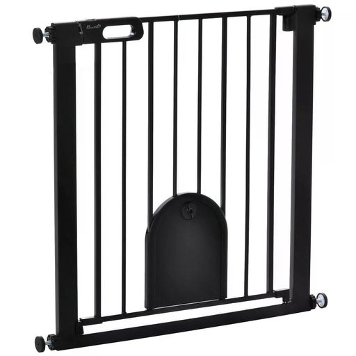 View full detailsPet Safety Gate 75-82 cm - Pressure-Mounted Barrier w/ Small Pet Door, Auto-Close & Double Locking - Ideal for Doorways & Stairs, For Dogs & Cats