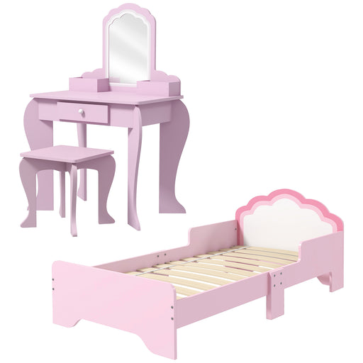 View full detailsKids Bedroom Set with Bed, Dressing Table & Stool - Princess Themed Furniture in Pink for Ages 3-6 - Perfect for Young Children's Bedrooms