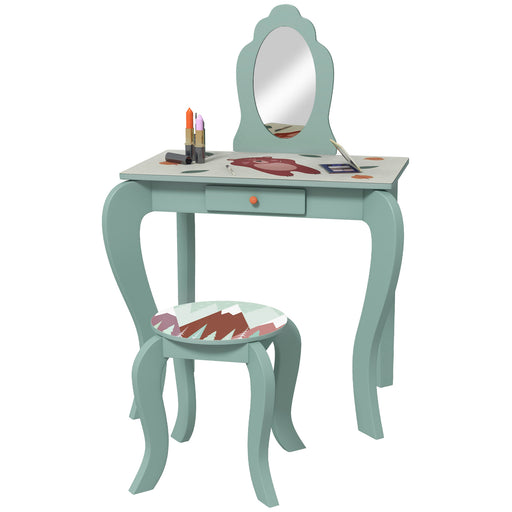 View full detailsKids Dressing Table with Stool and Mirror - Girls Green Makeup Vanity Desk with Drawer and Cute Animal Design - Ideal for Ages 3-6 Years