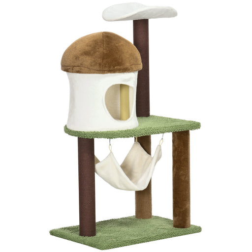 View full details100cm Cat Tree Tower - Mushroom Condo, Sisal Scratching Post, Hammock Activity Center - Ideal for Playful Cats & Kittens