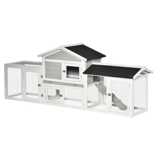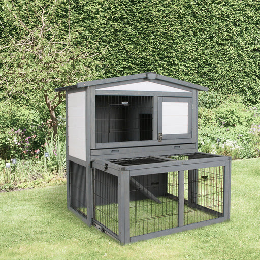 View full details2 Tier Wooden Rabbit Hutch - Small Pet House with Pull Out Tray, Ramps, Lockable Doors, Large Run Area, and Asphalt Roof - Ideal for Bunny Outdoor Shelter and Safety in Grey