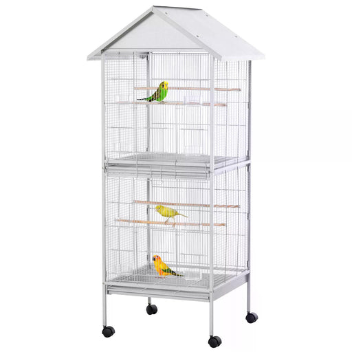 View full details170cm Tall White Metal Bird Cage - Parrot Home with Mobile Feeder, Perches, Food Containers, Rolling Stand & Wheels - Ideal for Avian Enthusiasts & Pet Safety