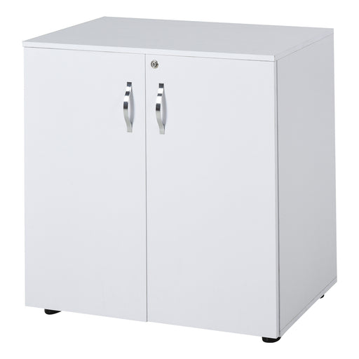 View full details2-Tier Locking Cabinet with Feet - Office Storage & File Organizer, Melamine Coating, Aluminum Handles - Secure Document Management with 2 Keys, Elegant White Design