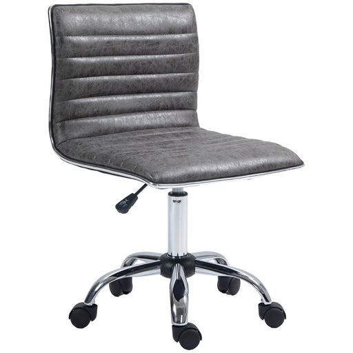 View full detailsErgonomic Armless Mid-Back Desk Chair - PU Leather Swivel Seat with Chrome Base - Ideal for Home Office and Workstations, Dark Grey