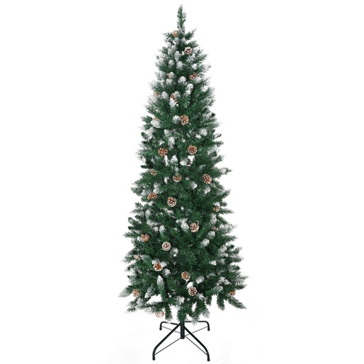 View full details6ft Artificial Snow-Dipped Pencil Christmas Tree - Xmas Holiday Decor with Red Berries & White Pinecones, Foldable Base - Ideal for Home & Party Festivities
