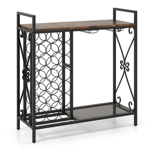 View full detailsVintage Industrial Style Bar Cabinet - Wine Rack and Four Rows of Glass Holders - Perfect Storage Solution for Wine Enthusiasts