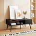 It features a fusion of high-quality brown/black finish and natural wood grain. The vintage wood grain surface is not only aesthetically pleasing but also easy to clean. The open design not only maximizes storage capabilities but also offers a harmonious blend of classic and elegance. The smooth drawer slide design along with double-layer storage space makes organizing daily essentials more convenient. With ample room to neatly store a laptop, snacks, and tissue boxes, storage woes are a thing of the past. Additionally, the elevated design at the base ensures easy cleaning by robotic vacuums. Whether used as a coffee table, TV stand, or side storage table, this piece is an indispensable multifunctional addition to your home or office. Elegant Appearance: The coffee table features a mid-century style with a vintage brown/high-quality black combined with natural wood grain. It comes with an open design for a classic, stylish appeal that will make it an eye-catching focal point wherever it is placed. Large Storage Capacity: The centre table features double layers of storage, including a spacious tabletop and open storage shelf, as well as a large drawer designed for your personal belongings, making it easy to organize your daily essentials such as cups, fruits, books. Solid Construction: The console table is equipped with sturdy metal legs and a metal support bar to ensure stability and durability, boasting a safe weight capacity of 70 kg, making it perfect for various home and office requirements. Easy to Clean: The table top is made of waterproof board, making it incredibly easy to clean, just wipe it clean with a damp cloth. The raised bottom of the table is designed for easy use by robotic vacuums to clean. Multiple Uses: The table is easy to install and can be flexibly used as a coffee table, TV stand or side storage table. The bottom is equipped with non-slip foot pads to increase the stability and safety of use.