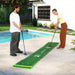 Elevate your gaming experience with this complete golf pong game set! This golf putting mat comes with 2 adjustable-length putters, 12 hole covers, and 6 golf balls in a handy carry bag. The 2-2 Pong style gameplay with 6 holes on each side caters to all ages, accommodating 2 or more players. This foldable and portable set is perfect for indoor or outdoor play, ideal for family nights, parties, picnics, or office breaks. Enjoy endless fun with this versatile golf pong set! Bullet Point:Everything Included: Ready to play with this comprehensive golf pong game set, featuring a putting mat, 2 putters with adjustable lengths, 12 hole covers, 6 golf balls, and a handy carry bag. 2-2 Pong Style Gameplay: There are 6 holes on each side of the putting green mat. The game starts with all holes open, and the players cover the hole when a putt is made. The first to cover all 6 holes wins. Ideal for All Ages: Equipped with 2 putters that adjust in length, this golf game set caters to players of all ages and skill levels, suitable for kids, teens, and adults. Perfect for any setting, the adaptable game will be a great addition to your family night or parties.Well-Made Details: The EVA slope on each side allows for a realistic putt, while the 8 ft marking line provides varying challenges. The boundary barrier on each side of the mat prevents the ball from rolling off, which is also integrated with golf ball holders. The anti-slip bottom ensures stability during the game.Foldable & Portable Design: This golf pong putting set comes with a carry bag, making it a breeze to transport and set up anywhere. It is a fun game for indoors and outdoors, perfect for your home, backyard, next picnic, office break, or camping trip.